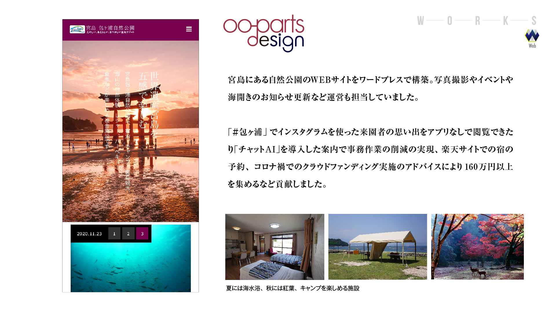 WEBサイトに関わるデザインやシステム(HTML、ワードプレス、PHP)を構築します。目を引くアニメーションと音楽、SEO対策、コンテンツ作りと運用、PC・スマホやブラウザの違いでも見やすいUIの設計などWEBに必要な機能を、クライアント様の目的や用途に合わせてご提案します。