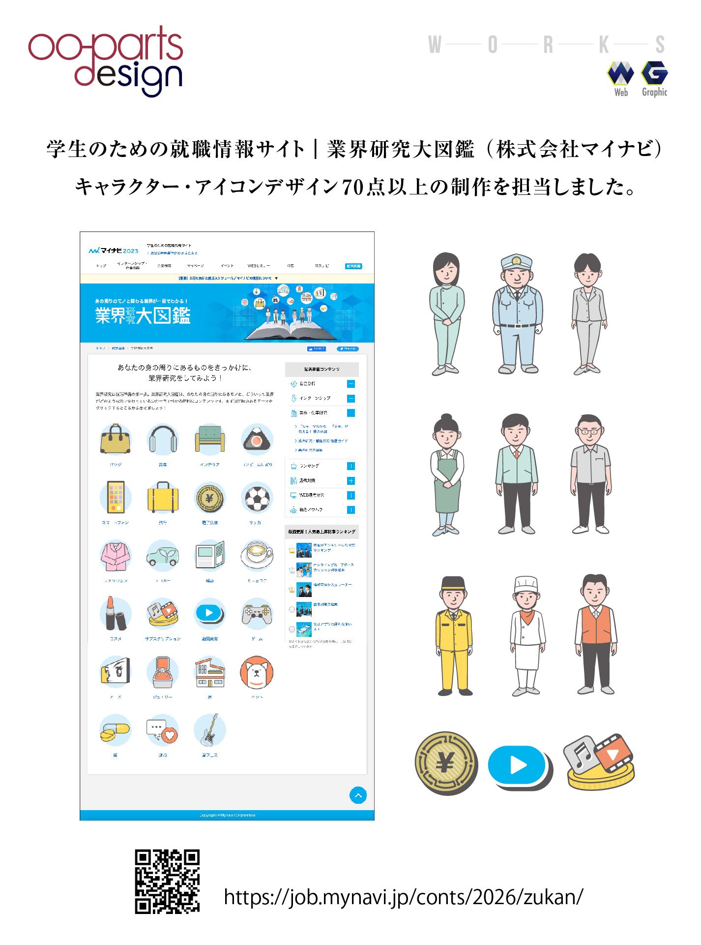 出版物のデザイン、BI VI 等のロゴマークやアイコン・イラスト、目を引くポスター、名刺やノベルティーグッズなどのグラフィックデザイン。雑誌や書籍、パンフレットのDTP業務まで幅広い印刷媒体に携わっています。