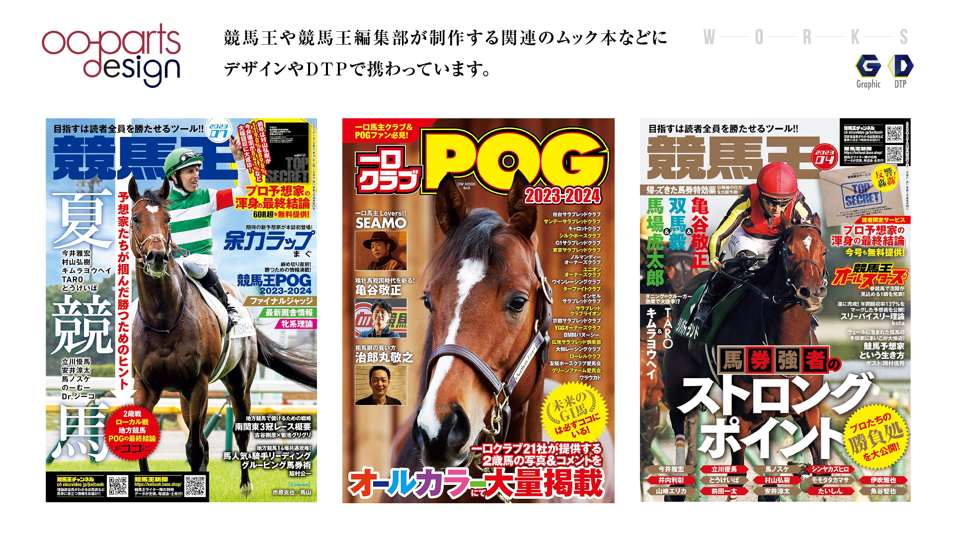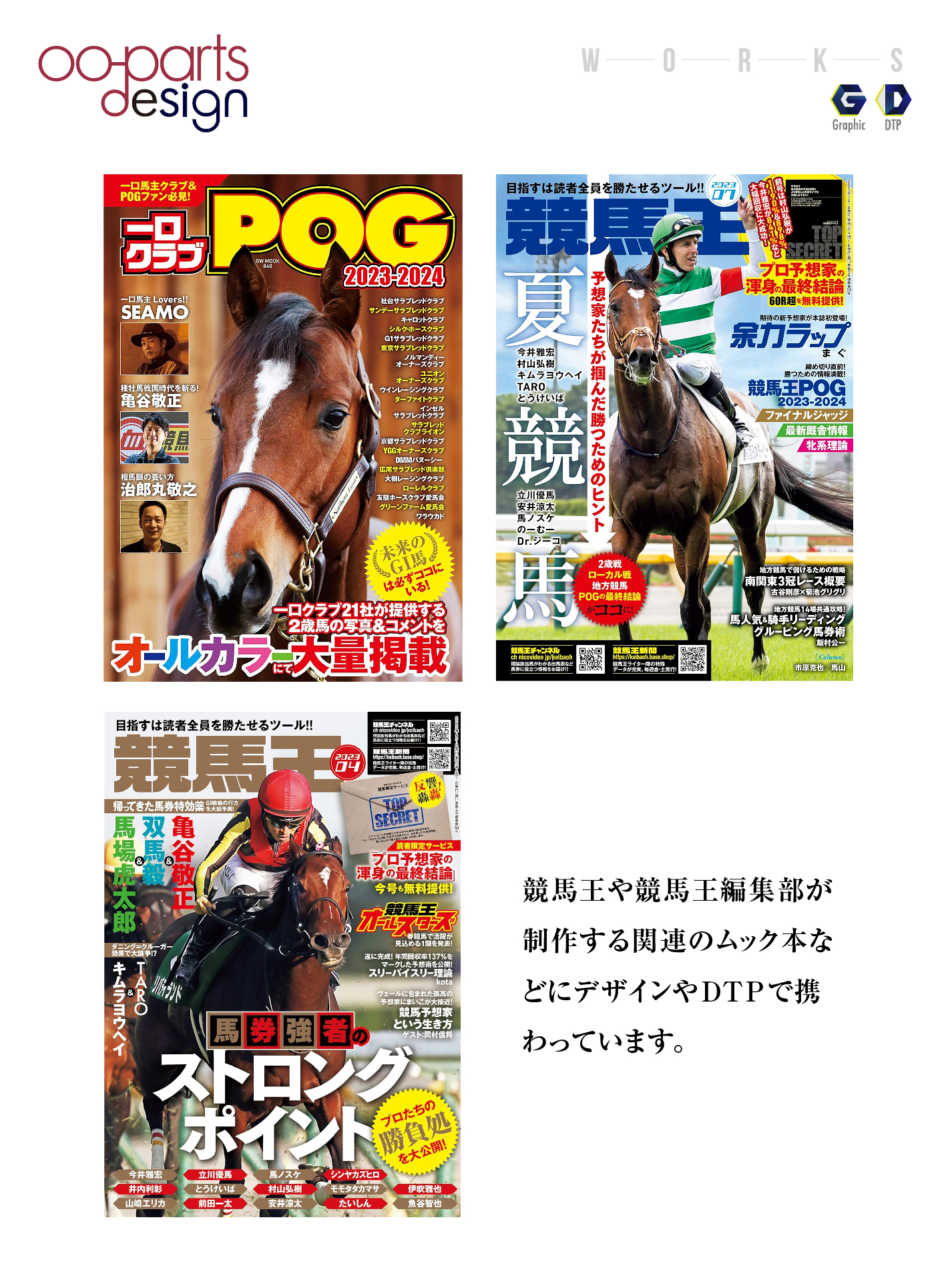 当社の強みの一つに、出版業界で長く携わっている経験を活かし、自社で企画から制作から出版まで行える点です。出版される本は、紙の本にとどまらずスマートフォン対応の電子書籍としても対応しており、現在まで出版事業部では競馬関連を主に多くの出版物を手がけ世に送り出しています。